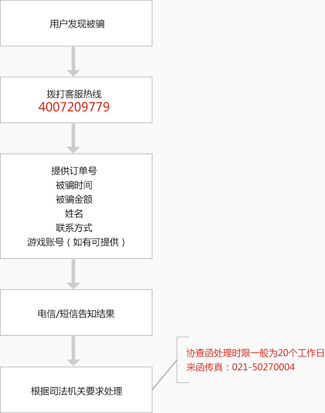 针对用户投诉在网购过程中因点击被篡改的链接,或因个人信息被盗及银行账号或第三方支付账号被盗等原因,受害人资金被盗并被诈骗分子用于游戏充值。为了尽可能冻结被盗资金,挽回受害人被盗资金,特推出网络诈骗投诉绿色处理流程,有关指引如下: